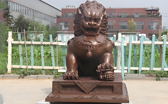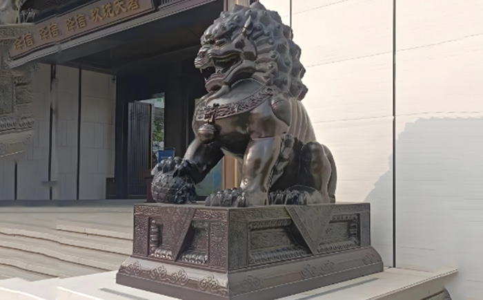 3.表面處理:通過(guò)手工打磨與氧化處理,賦予獅子雕塑古樸典雅的色澤,增強(qiáng)其藝術(shù)表現(xiàn)力。