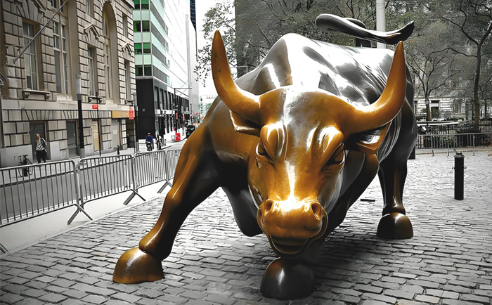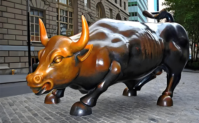 紐約曼哈頓的華爾街銅牛,無疑是全球最具影響力的銅牛雕塑之一。這尊由意大利裔藝術(shù)家阿爾圖羅?迪?莫迪卡創(chuàng)作于 1989 年的作品,重達 3.2 噸,以肌肉虬結(jié)的軀體、昂首前沖的姿態(tài),成為 “牛市” 的象征。其誕生背景頗具傳奇色彩:在 1987 年美股崩盤后,藝術(shù)家自掏腰包 36 萬美元鑄造銅牛,連夜安放在紐約證券交易所前的圣誕樹下,寓意 “經(jīng)濟復蘇”。盡管初期因 “非法放置” 引發(fā)爭議,但民眾對它的熱愛最終讓其落戶于百老匯大街,成為紐約的城市名片。2009 年,中國國旗首次在銅牛旁升起,見證了中美關系的深化;而 2019 年的搬遷計劃,則引發(fā)了全球?qū)ζ湮幕瘍r值的再思考。這尊銅牛不僅是金融市場的晴雨表,更傳遞著逆境中昂揚向上的信念。